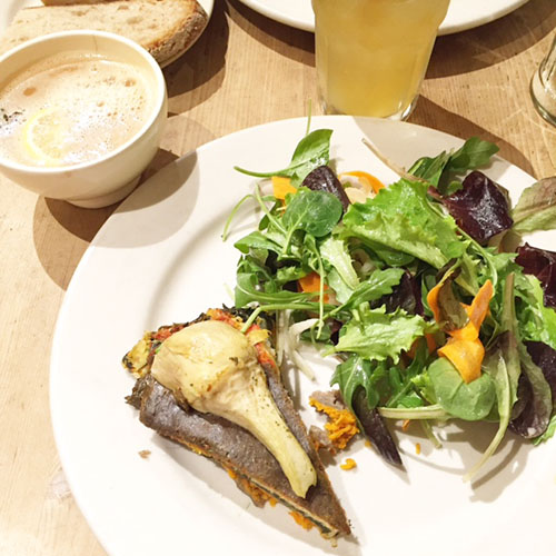 Le Pain Quotidien ist – der Name lässt es verraten – nicht wirklich amerikanisch. Die Kette mit belgischen Wurzeln hat jedoch einige Filialen in New York verteilt und bietet auch hier leckere Gerichte mit glutenfreien sowie veganen Optionen. Meine persönliche Empfehlung ist die Quiche aus sechs verschiedenen Gemüsesorten plus Salat. Und wer nach einem langen Marsch durch die Stadt fröstelt, dem sei der heiße Cider mit Gewürzen wärmstens ans Herz gelegt.